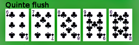 Une quinte flush est composée d’une suite de même couleur. (QUINTE + FLUSH)